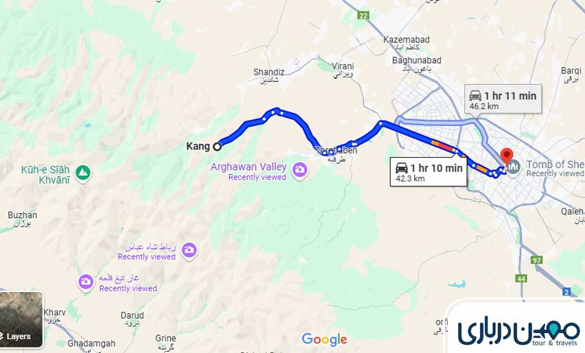 برای دیدن فاصله روستای کنگ تا رباط شاه عباسی بر روی نقشه کلیک کنید